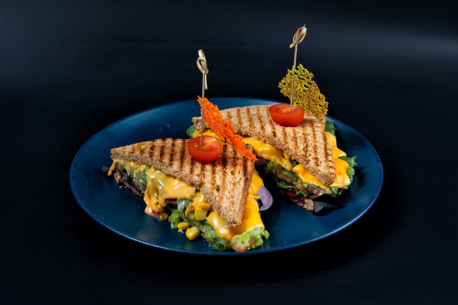 Club Sandwich – Layers of grilled chicken, crispy bacon, fresh lettuce, tomatoes, and mayo on toasted bread.